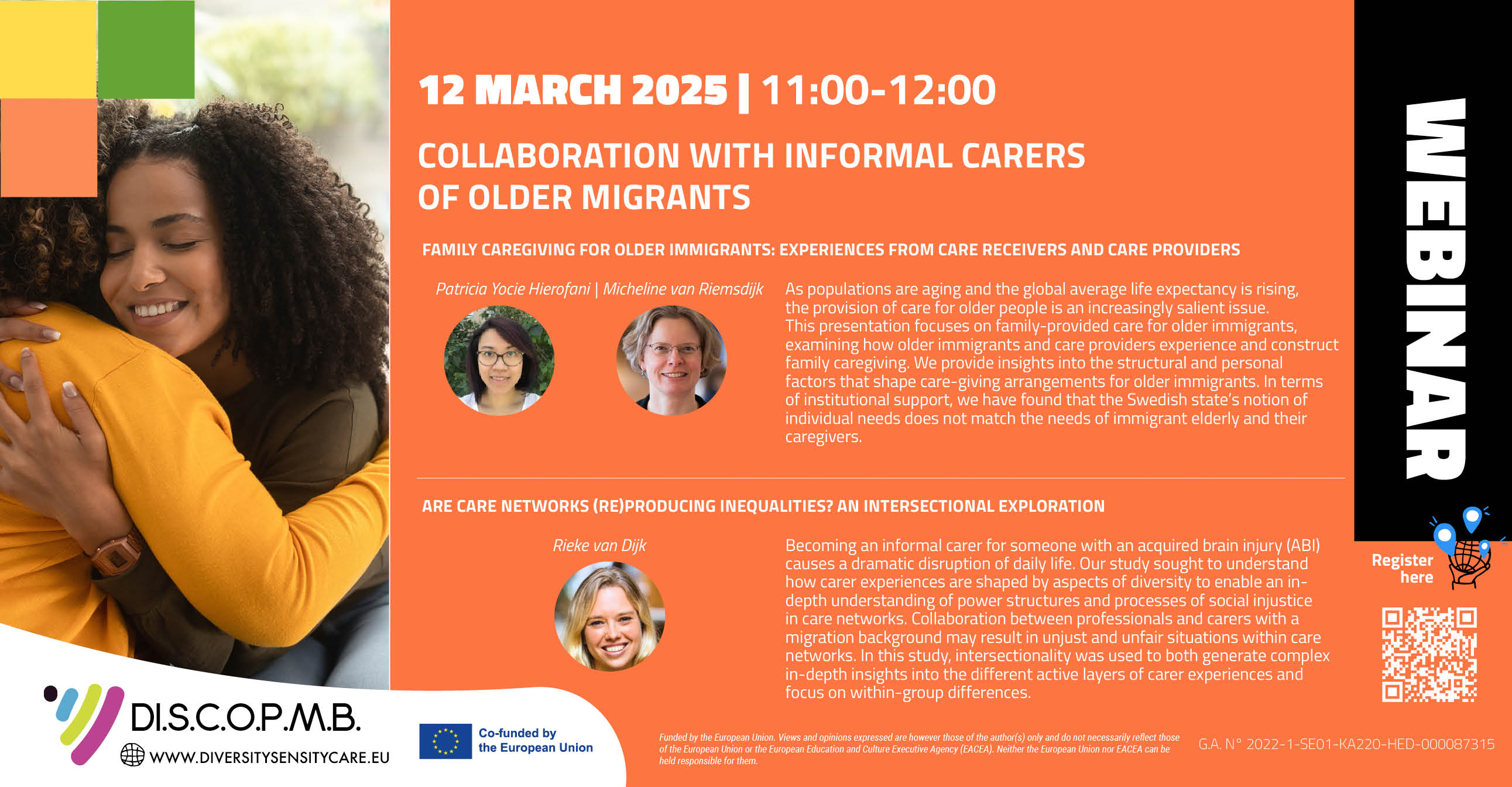 The Webinar series is organized within the DI.S.C.O.P.M.B. project co-funded by the Erasmus+ program of the European Union. Find out more about the project at https://www.diversitysensitycare.eu/.