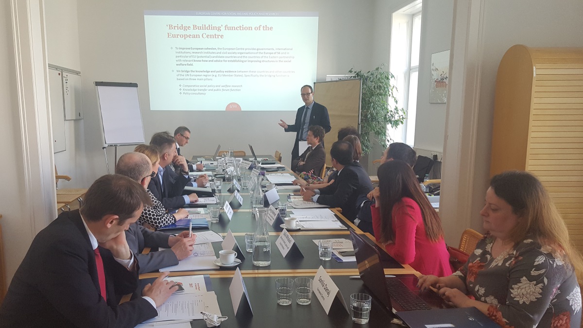 The European Centre organised the ‘Bridge Building in Social Welfare Policy’ Workshop with the European Centre’s National Liaison Officials (NLOs) in Vienna, on 19-20 April 2018. NLOs and representatives from the Western Balkans and Eastern Partnership countries, Board Members from Austria and the Slovak Republic, and officials from the Austrian Federal Ministry of Labour, Social Affairs, Health and Consumer Protection, met to exchange experiences regarding the implementation of transnational projects. They also discussed project ideas and explored different cooperation and funding opportunities. This was the first event with this format and scope, and an important step towards deepened cooperation with the NLOs in the region.