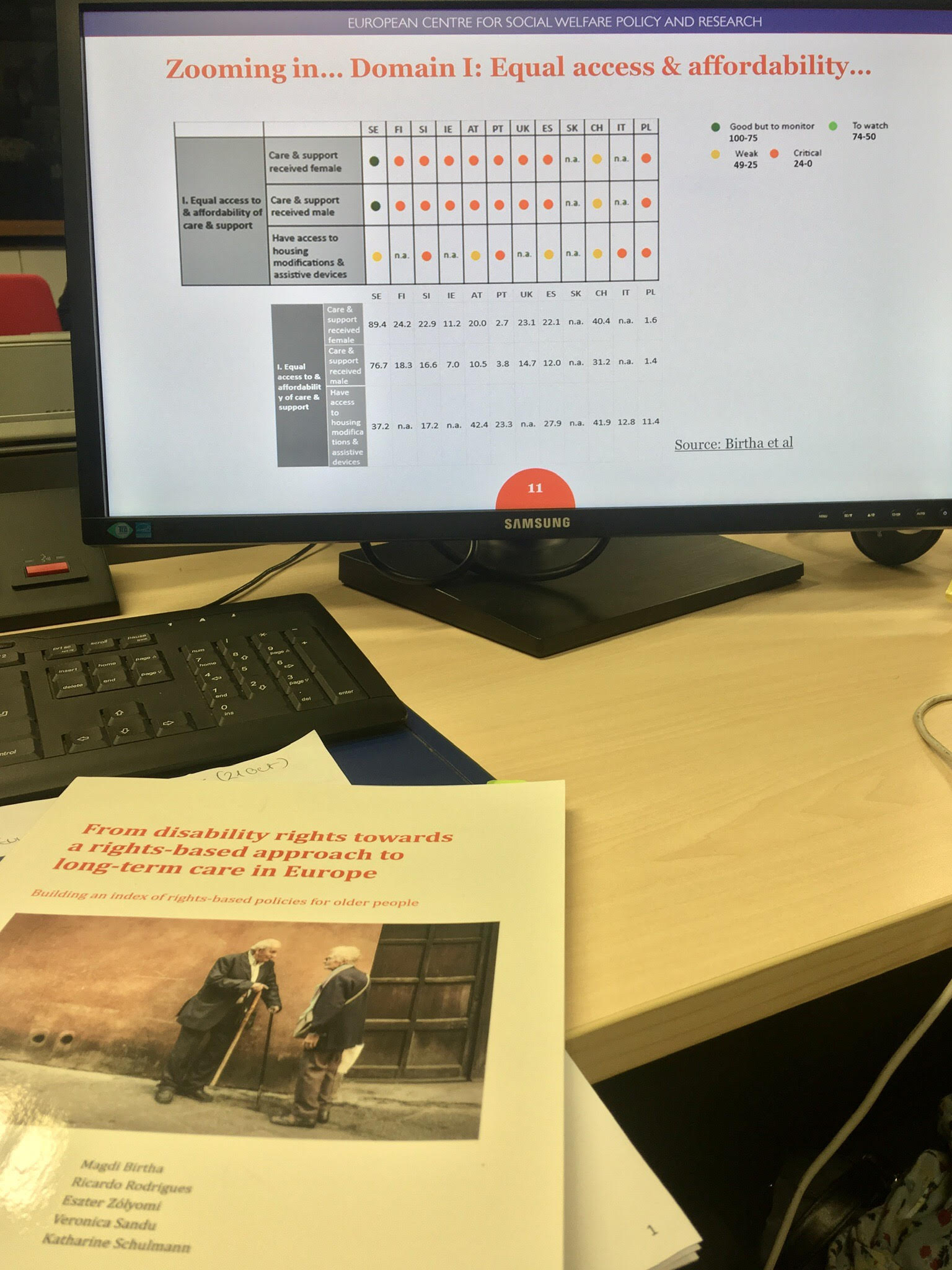 Our colleagues emphasised the importance of taking a human rights-based approach in long-term care by linking outcomes with structure and process indicators that are relevant in this context. Furthermore, they introduced two multi-dimensional tools developed by our research team to monitor policies for older people with care, or support needs: