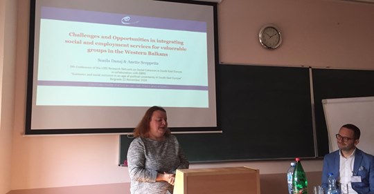 Our colleague Sonila Danaj presented research led by the Head of Work and Welfare Unit Anette Scoppeta on the integration of employment and social services in the Western Balkans at the 5th Conference organized by the LSEE Research Network on Social Cohesion in South East Europe in collaboration with EBRD "Economic and social inclusion in an age of political uncertainty in South East Europe". The event took place at the Faculty of Economics of the University of Belgrade on the 21-22 November 2019.