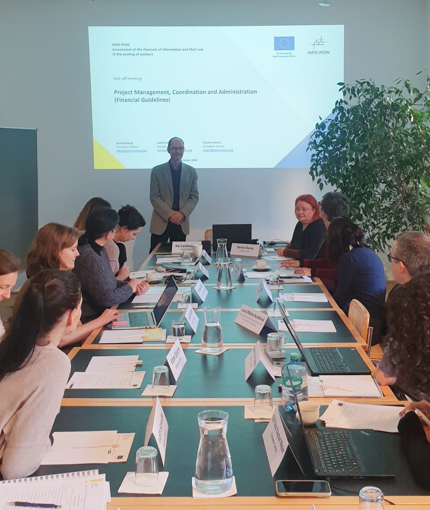 The consortium partners had a very productive kick-off meeting in Vienna to discuss the implementation of the project INFO-POW: Assessment of the channels of information and their use in the posting of workers. The consortium was welcomed by our Executive Director, Kai Leichsenring, and hosted by Sonila Danaj, Team Lead, Employment and Labour Mobility and Project Coordinator. During the meeting the partners discussed the different work packages and the deliverables of the project. In the second half of the day, a methodological workshop took place, where in-depth discussions on the survey methodology and the mapping of channels of information tool were held. At the end of the meeting, the partners appointed their representatives in the Steering Group of the project.