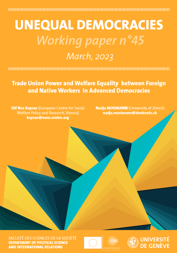 In this Unequal Democracies Working Paper, Elif Naz Kayran, European Centre, and Nadja Mosimann, University of Zurich, study the link between trade union power and more inclusive socio-economic rights for foreign workers. The analyses show that trade unions can leverage stronger membership bases and their institutional embeddedness in the decision-making for better socio-economic rights outcomes for foreigners. The findings of the analyses are in line with the arguments developed in earlier case studies concerning the intersection of industrial relations and the politics of immigration. However, the study provides a more complex picture of the influence of trade unions’ power, especially in the decades that follow the 1980s, which seem to diverge from a straightforward relationship between stronger union powers fostering more equal outcomes for the foreign workforce.