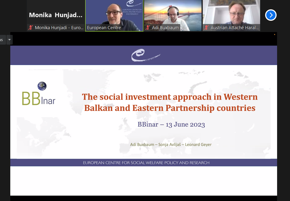 Our 5th BBinar on ‘The social investment approach in the Western Balkans & Eastern Partnership countries took place on 13 June 2023. Ca. 50 stakeholders, including international organisations, ministries, civil society, NGOs, universities, and research institutes from the Western Balkans, Eastern Partnership countries and throughout the UNECE region, came together to discuss what role the social investment approach to social welfare policies can and should play in supporting sustainable development in the Western Balkans & the Eastern Partnership countries.