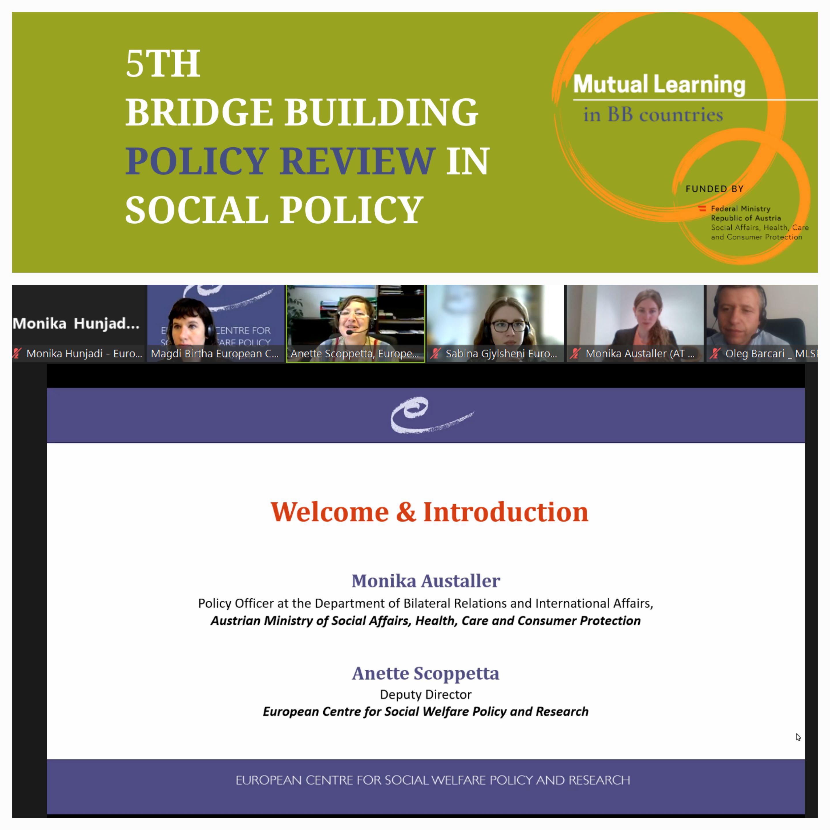 The European Centre organised the 5th BB policy review in social welfare on 05 and 06 June 2023. Around 40 representatives registered from ministries and public bodies from Albania, Armenia, Azerbaijan, Georgia, Kosovo, Moldova, and Ukraine. Participants
