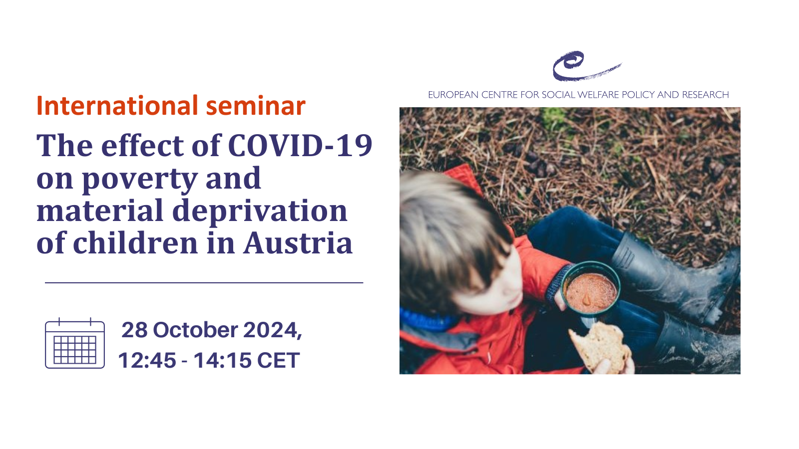 In our series of international seminars, in this face-to-face event the main results of the project „The effect of COVID-19 on poverty and material deprivation of children in Austria“, funded by the Jubiläumsfonds of the Austrian National Bank (project number 18785), will be presented and discussed. Register and find more information about the event here.