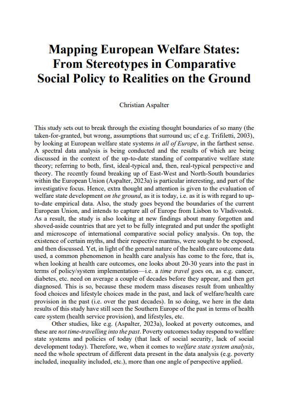 Updated working paper: Mapping European welfare states by Christian Aspalter