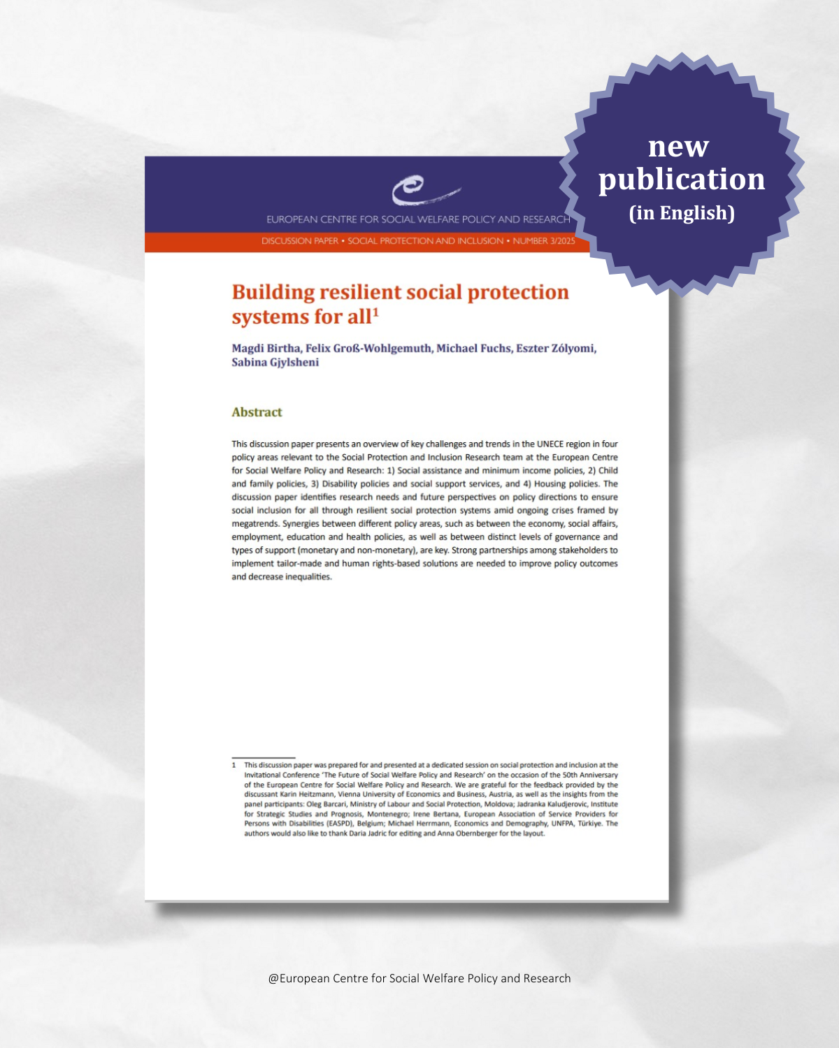 This discussion paper presents an overview of key challenges and trends in the UNECE region in four policy areas relevant to the Social Protection and Inclusion Research team at the European Centre for Social Welfare Policy and Research: 1) Social assistance and minimum income policies, 2) Child and family policies, 3) Disability policies and social support services, and 4) Housing policies.