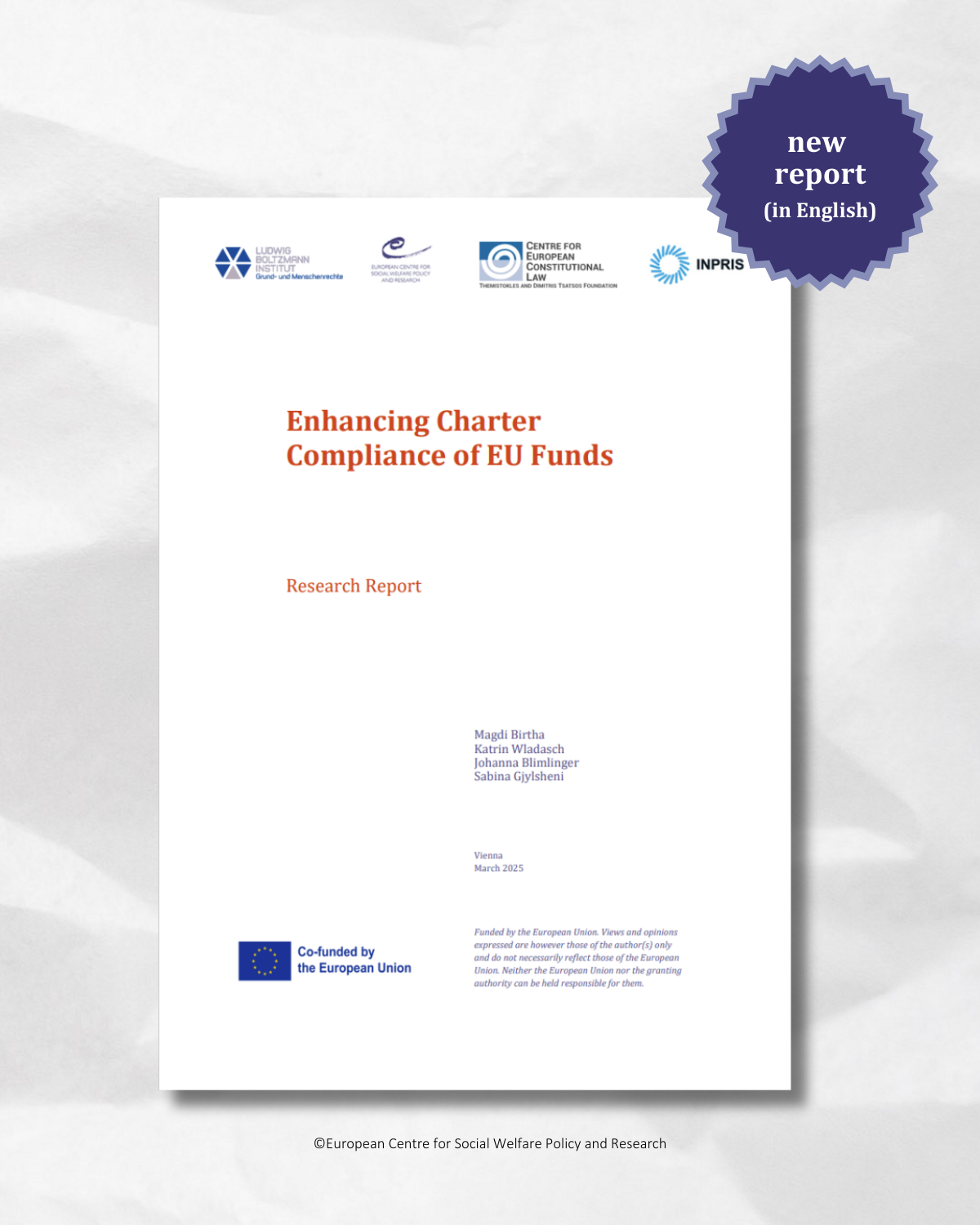 This report summarises the findings of Work Package 2 of the ECHOFunds project. It is based on in-depth research conducted in Austria, Greece and Poland. The focus lies on EU funds and the Multi-Annual Financial Framework (MFF) of the EU, Charter conditionality, and (non-)compliance with Charter rights and principles. The report also examines the role of national bodies with a human rights remit, such as NHRIs, equality bodies and ombuds institutions, as well as civil society organisations in the EU funding cycle. Particular emphasis is placed on the perspectives of Managing Authorities in Austria, Belgium, Greece, Ireland and Poland regarding the implementation of Charter conditionality and the development of partnerships.