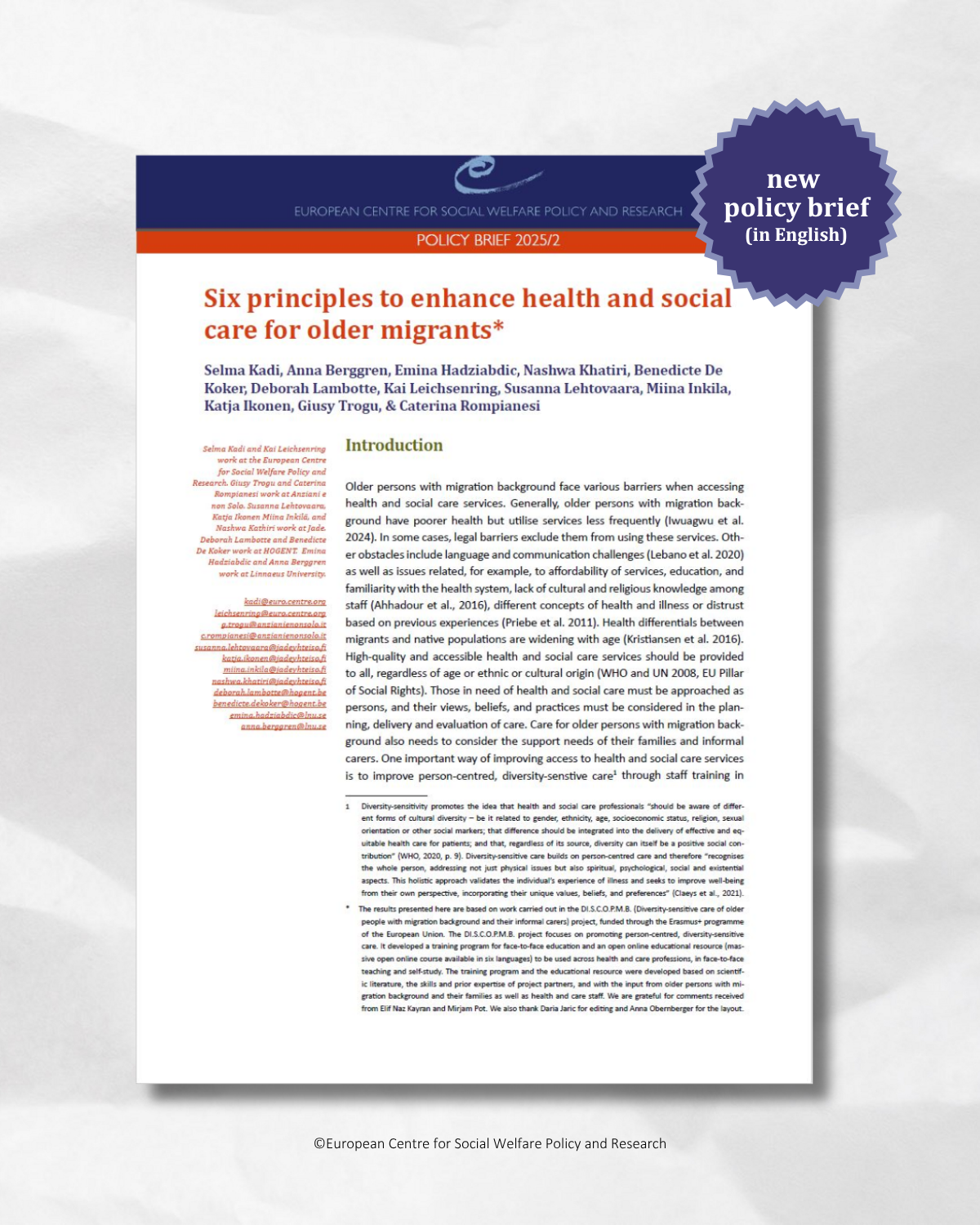 Policy brief: Six principles to enhance health and social care for older migrants