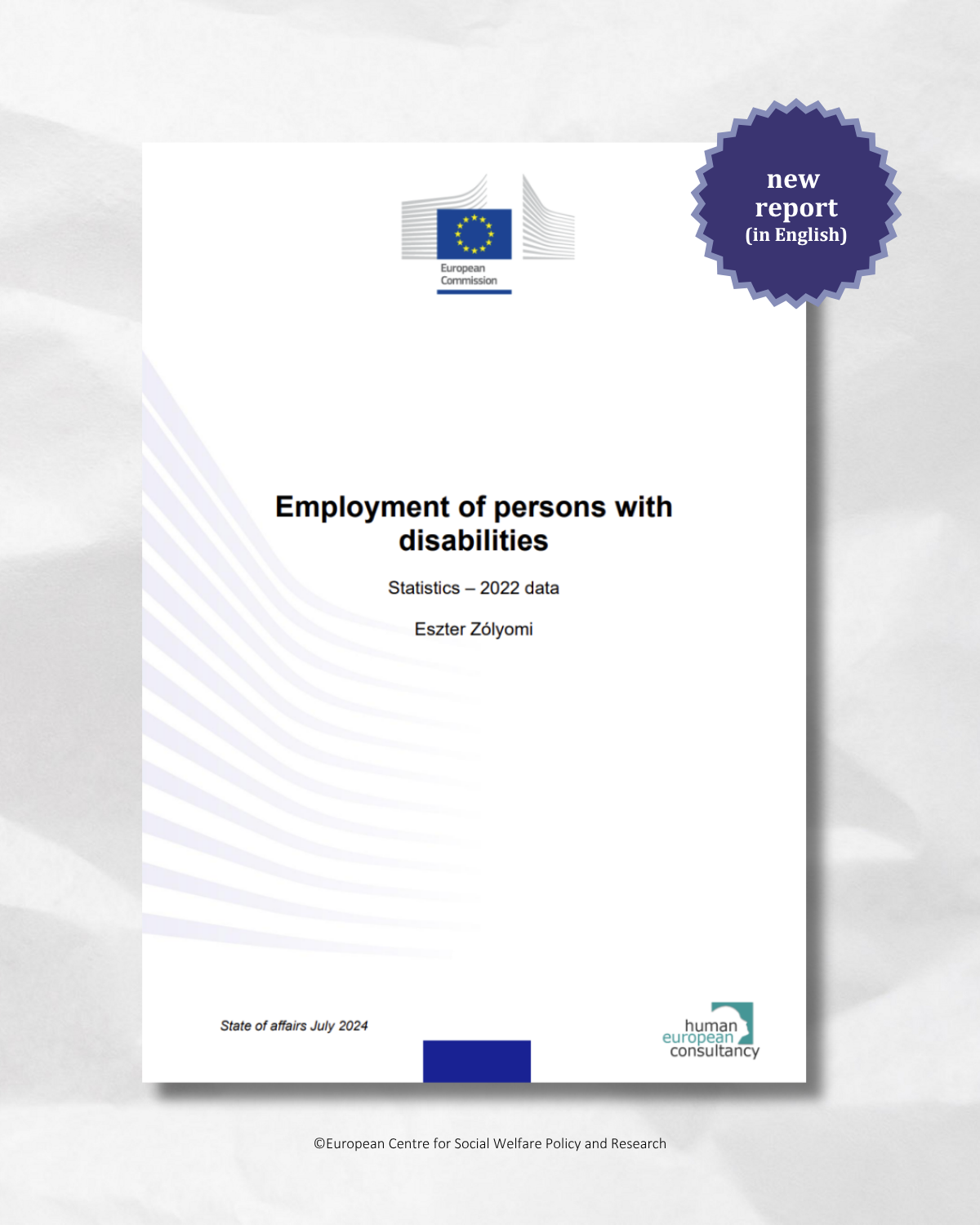 As part of the European Disability Expertise II, the Thematic Statistical Report on Employment of Persons with Disabilities, authored by Eszter Zolyomi, has been published. The statistical report aims to provide policy-relevant analytical support for the monitoring of the employment situation of persons with disabilities in the EU. It presents statistics on the employment rates with a focus on trends over time and characteristics of people in employment comparing persons with and without disabilities.