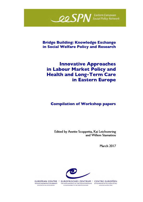 It provides a snapshot of contents for further discussion and, ideally, for mutual learning among the wider European community. It highlights the findings from scholars and experts when examining innovative approaches implemented in their countries. The publication consists of a total of eight papers: four papers offer insights into research and good practice in the field of labour market policy and four papers provide information on findings from the area of health and long-term care. 'Bridge Building: Knowledge exchange in social welfare policy and research: Innovative approaches in labour market policy and health and long-term care in Eastern Europe'