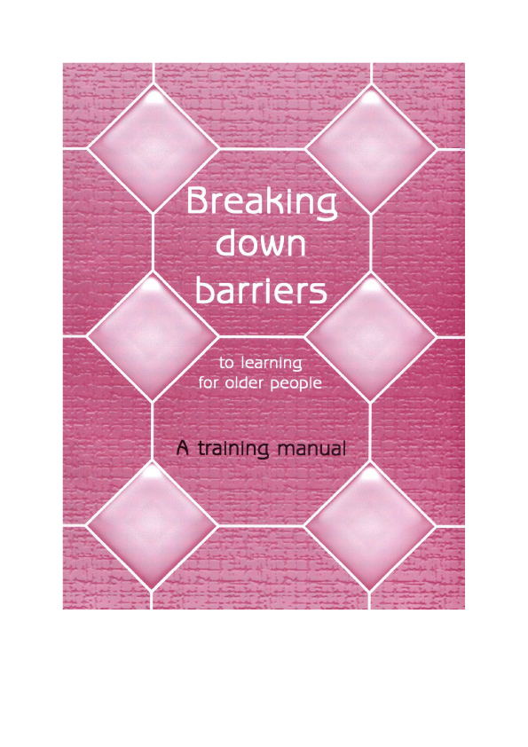 This publication is a training manual for those who work with older people - as adult educators, as carers or as community activists. It will help those who train such practitioners to identify the barriers which prevent so many older people from engaging in learning activities, and will enable them to overcome those barriers. It contains a comprehensive training programme with detailed descriptions of all the activities and supporting group materials.