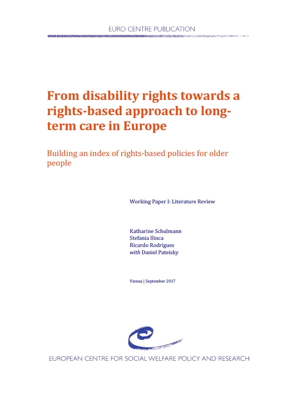 This working paper presents the results of a literature review carried out in the first work package of the project, "From disability rights towards a rights-based approach to long-term care in Europe: Building an Index of rights-based policies for older people". The authors investigate the key concepts of the movement to secure the rights of people with disabilities in order to understand how the disability rights movement can inform the ongoing policy debate surrounding older people's rights, and potential limitations of the former model in securing the rights older people with care and support needs. The paper concludes by identifying specific human rights that should be considered in the context of care for older people.
