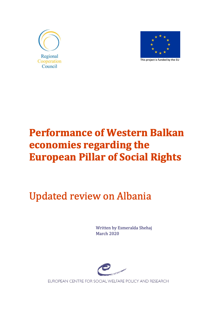 The original report was written by Esmeralda Shehaj in collaboration with ICF and the European Centre for Social Welfare Policy and Research in April 2019. The updated report was written by Esmeralda Shehaj in 2020 in collaboration with the European Centre for Social Welfare Policy and Research, in the framework of the Regional Cooperation Council's (RCC) Employment and Social Affairs Platform 2 (ESAP 2) project.