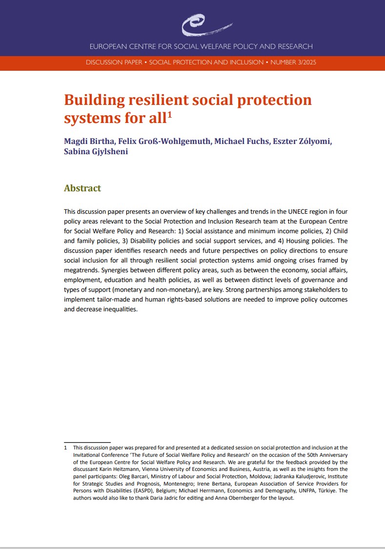 The discussion paper identifies research needs and future perspectives on policy directions to ensure social inclusion for all through resilient social protection systems amid ongoing crises framed by megatrends.