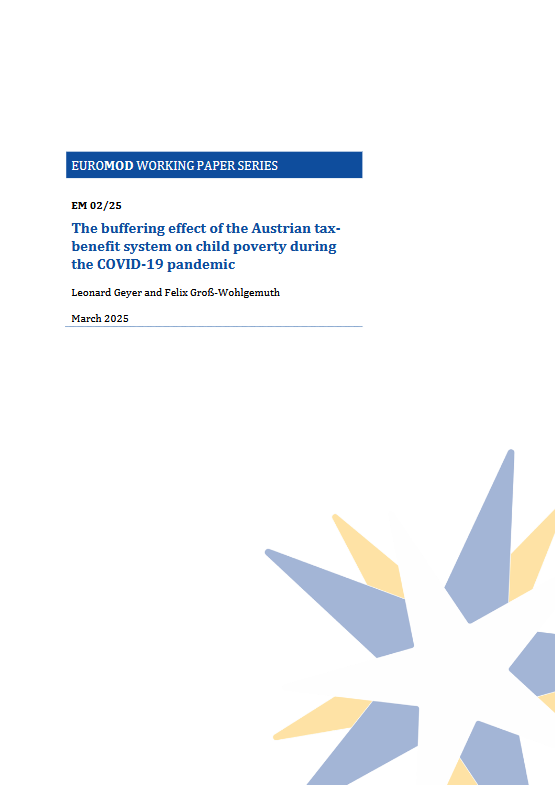 This paper analyses the effect of the COVID-19-induced labour market shock on household income, the at-risk-of-poverty (AROP) rate for children in Austria, and the buffering effect of the Austrian tax-benefit system. We apply Paulus & Tasseva’s (2020) decomposition analysis based on EUROMOD simulations and propose a new approach to adjust Austrian EU-SILC data to control for benefit payments included in income variables. Our results indicate that automatic stabilisers and discretionary policy measures protected households with children from significant market income shocks, preventing an increase in child poverty between 2019 and 2020. However, comparing 2019 and 2021, the tax-benefit system was less successful in protecting lower-income families, resulting in an increase in the child AROP rate. Furthermore, we show that not adjusting input data would overestimate disposable income increases and distort the effects of discretionary policies and automatic stabilisers.