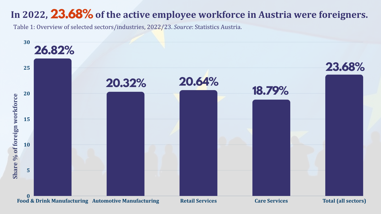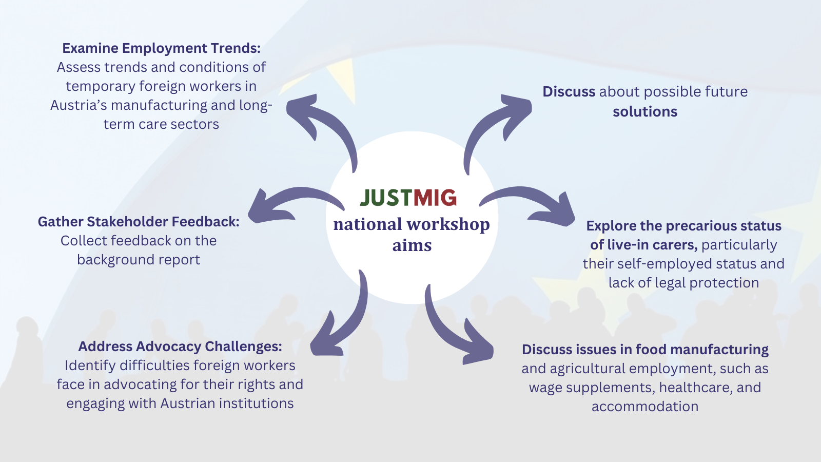 Recognising the growing significance of temporary employment of migrant workers in EU labour markets, the JUSTMIG project investigates the impact of temporary migrant employment in Austria and 8 other migrant sending and receiving countries. The Austrian case study focuses on sectors where temporary migrant workers are increasingly present, namely, care and food manufacturing. The large share of the foreign workforce in Austria demonstrates the relevance of studying the existing representation institutions and actors and their relations with this workforce.